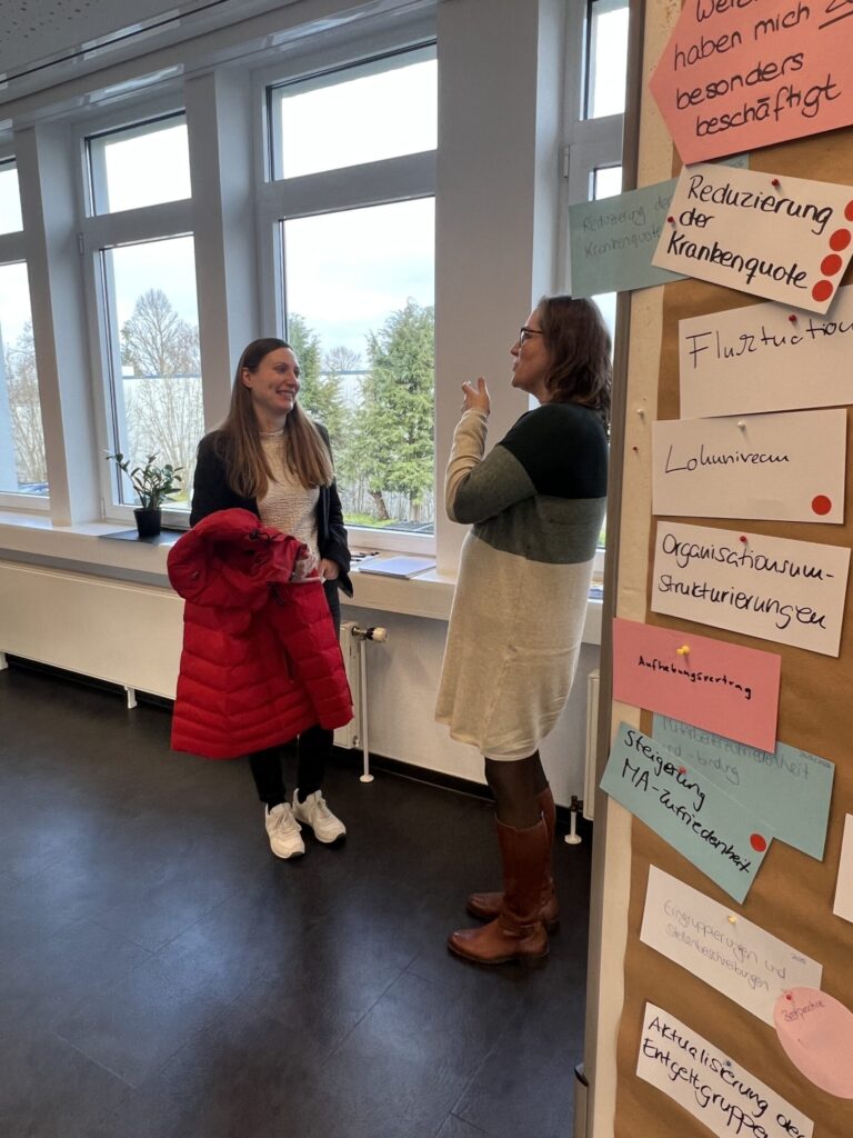 Das Feedback war eindeutig: Der Erfa-Kreis bietet echten Mehrwert. Die Teilnehmenden engagieren sich, bringen eigene Erfahrungen ein und profitieren vom Blick über den Tellerrand. Gleichzeitig konnten wir bereits eine Liste spannender Themen für das kommende Jahr sammeln – von Personalabbau und Offboarding-Prozessen bis hin zu strategischem Talentmanagement.